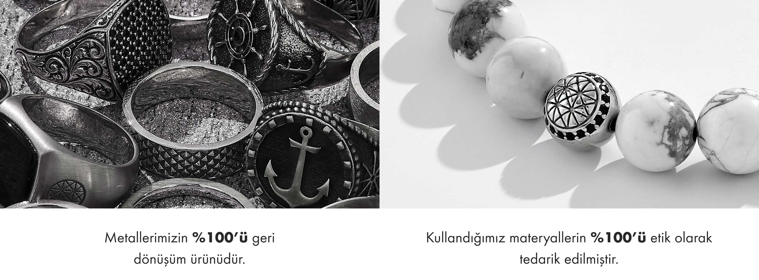 Dünyamız üzerindeki yükümüzü hafifletmek ve aşırı tüketimi sınırlamak için en çok dikkat ettiğimiz nokta mümkün olan en yüksek kalitedeki malzemeleri kullanarak uzun ömürlü takılar üretmek. Üretimimizi her zaman en üst sosyal ve çevresel standartlara göre yapmaya özen gösteriyoruz ve kaliteden asla taviz vermiyoruz. modada seri üretimi ve tüketimi kesinlikle reddediyoruz. Bu tip üretim yapan markalardan farklı olarak eşsiz ürünlerimizin tasarımı ve üretimi için ciddi bir bütçe ayırıyoruz.